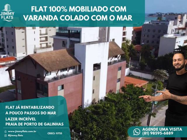 FLAT 100% MOBILIADO E EQUIPADO, COM VARANDA PRONTO E JÁ RENTABILIZANDO EM PORTO DE GALINHAS